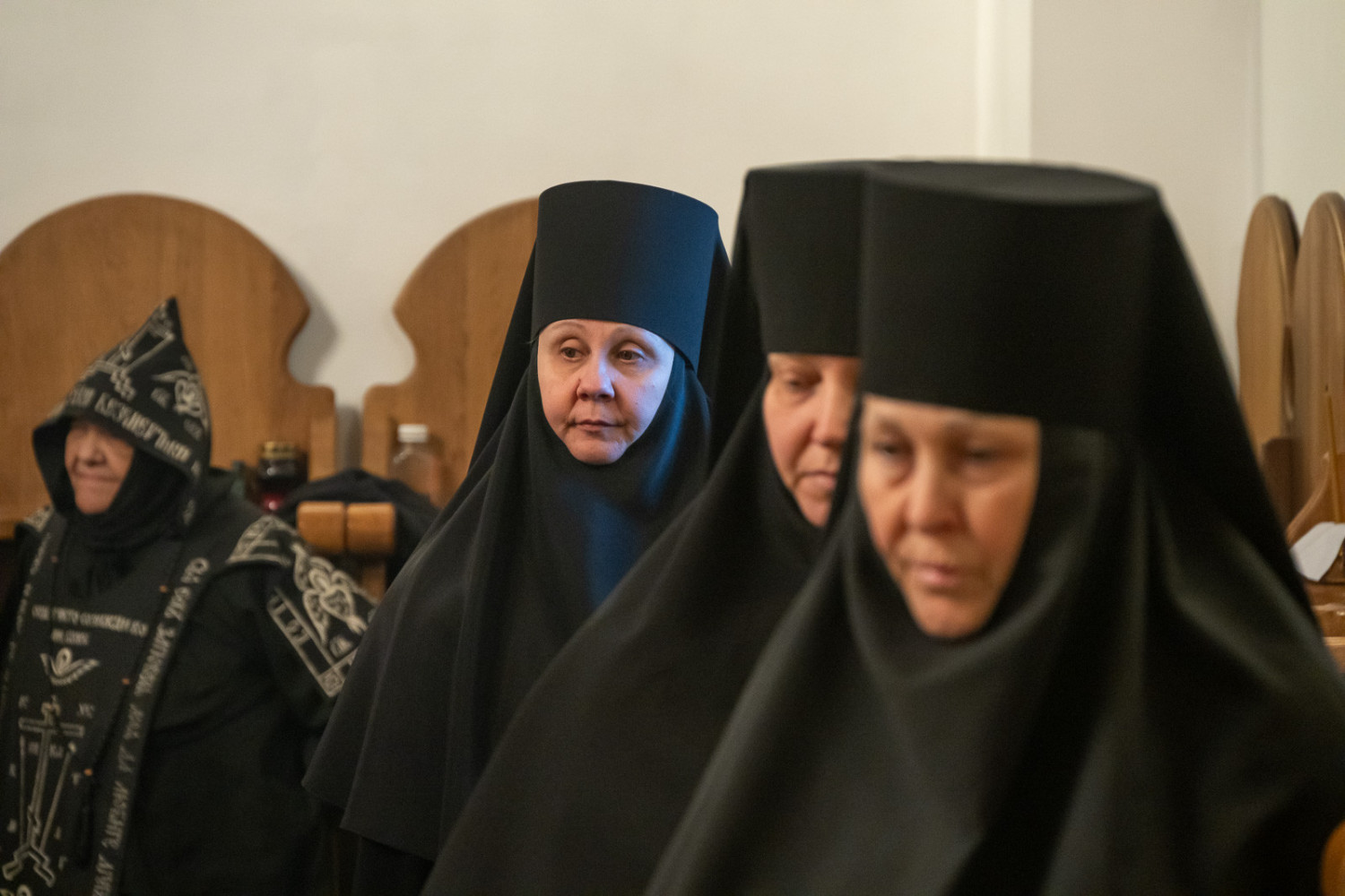 За богослужением молилась игумения Серафима (Семенова) с сестрами обители.