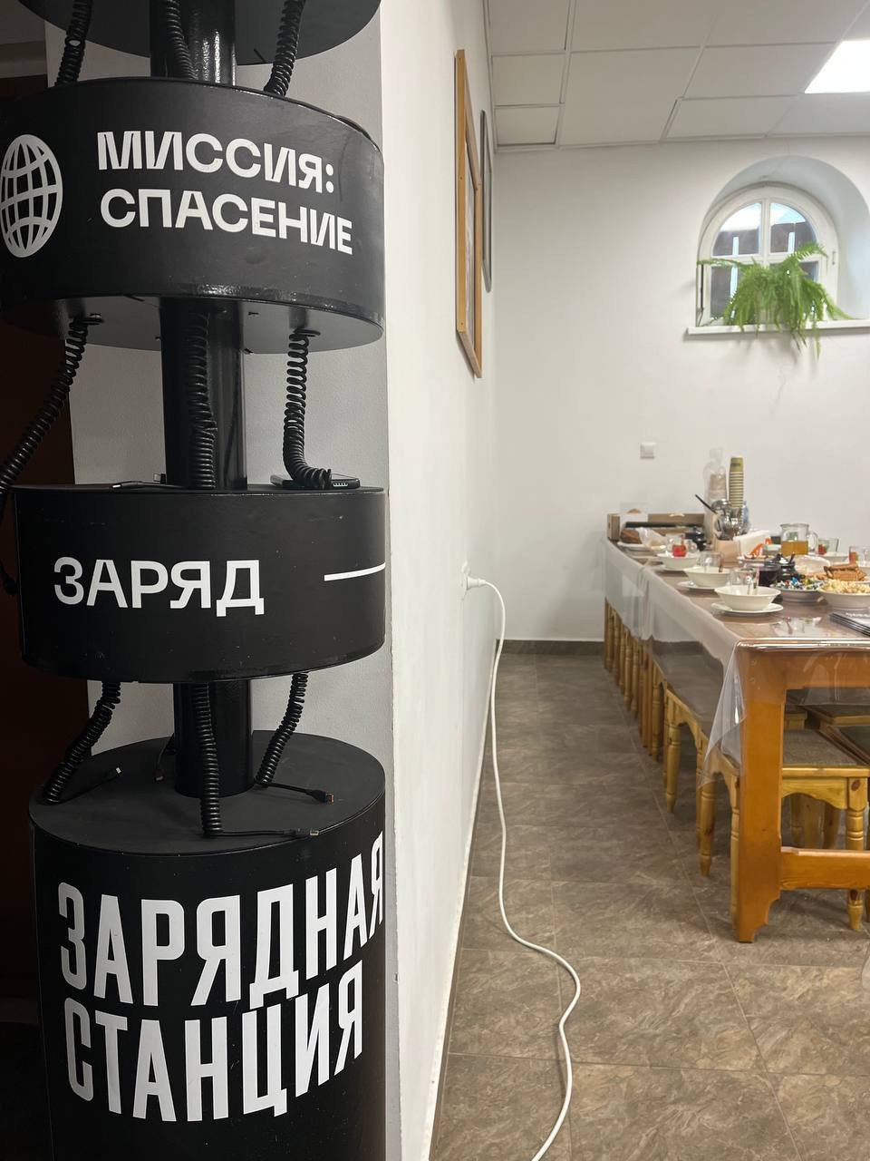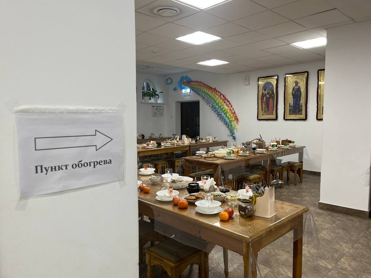Здесь посетители смогут зарядить мобильные устройства, выпить горячий чай, попробовать вкусные пирожки, приготовленные с любовью в нашем монастыре, согреться и просто отдохнуть от напряженной обстановки. Также организован досуг для маленьких гостей: можно порисовать или сделать красивые фигуры из пластилина.