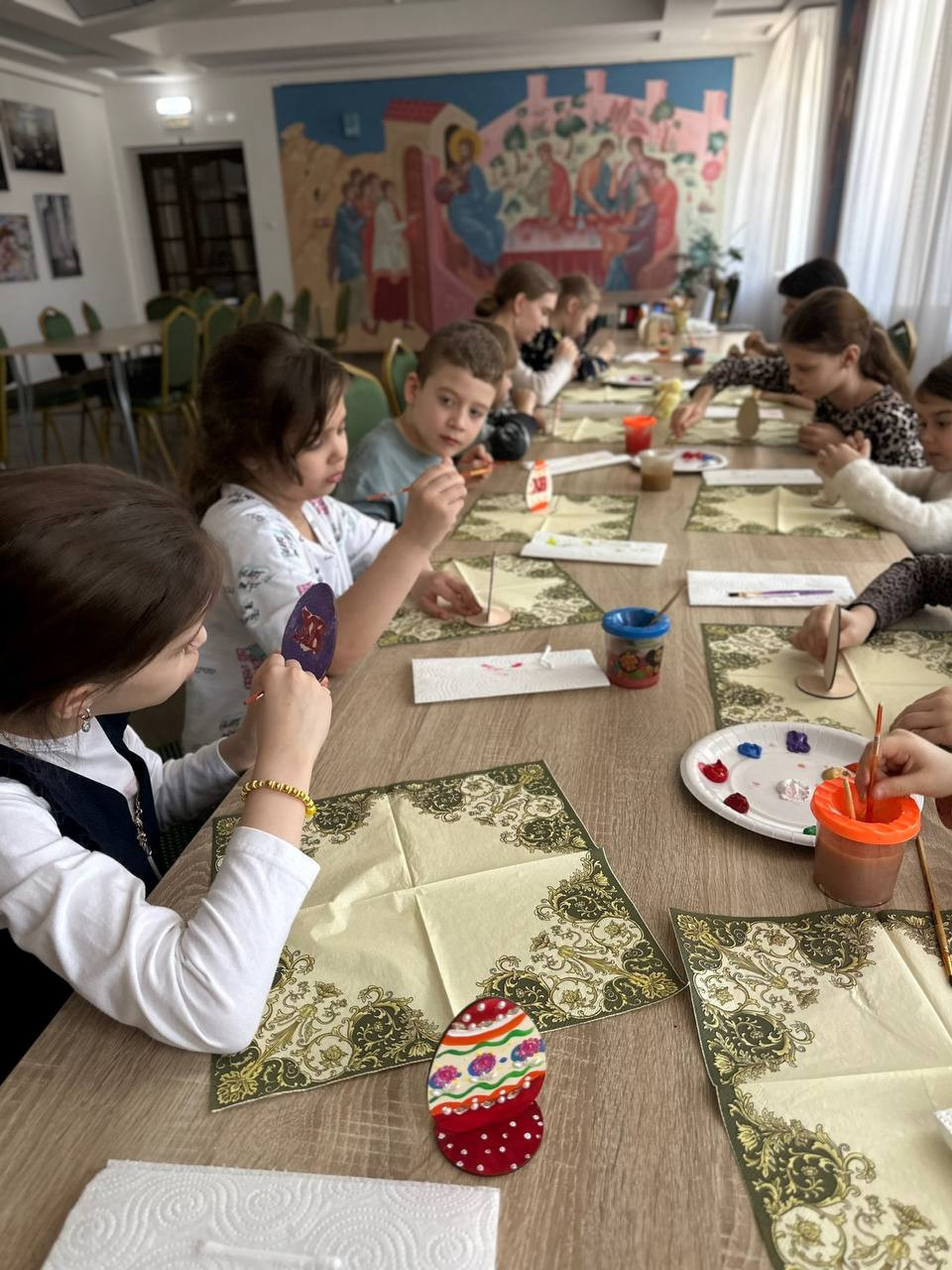 Подготовка к Пасхе Христовой проявляется и в делах. Ребята стараются не только узнать о добре, но и воплотить его в жизни. Одним из таких событий стало изготовление пасхальных поделок для центра пожилых людей, которым особенно тяжело. Дети раскрасили сувениры для оказания поддержки, внимания и любви.